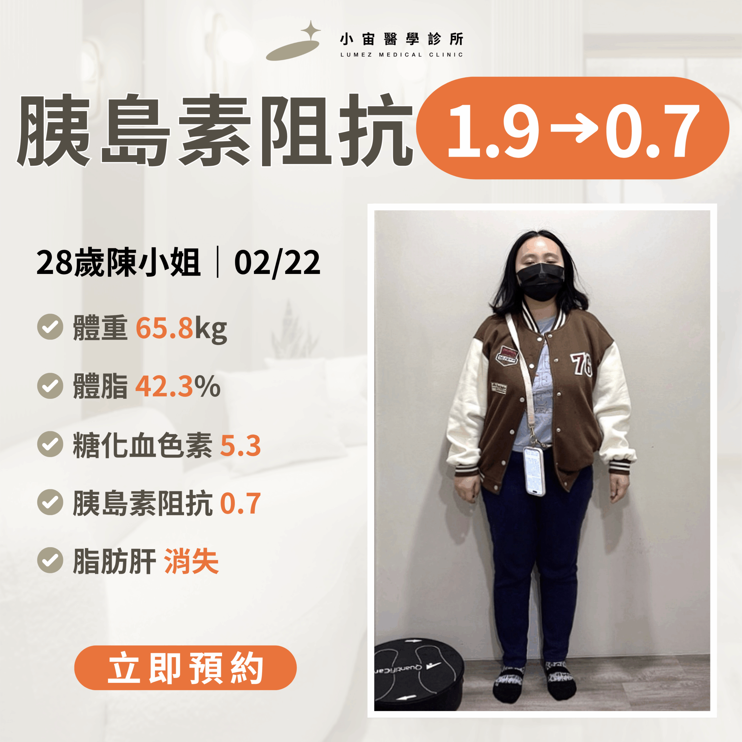 搭配腹部超音波、3段式血糖及胰島素檢測、個人化基因檢測等,全面了解您的健康狀況,為您量身定制能根本解決胰 島素阻抗、恢復荷爾蒙平衡的最佳減重方案。